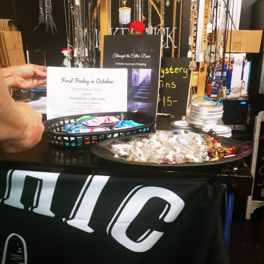 My first book signing for “Through the Cellar Door,” was on October 9th and it was a wonderful turn out. It was held at the Wicked Wick, inside the Pendleton Art Center in Middletown, Ohio. They were wonderful hosts and were so supportive. The musician that evening was the multitalented Chuck Evans who graciously passed his mic to me on his break and gave me the opportunity to perform a few poems. I have learned a lot from this process and I have had amazing support from friends and family. I even had a new friend come to meet me from St Louis. It was a very special evening.